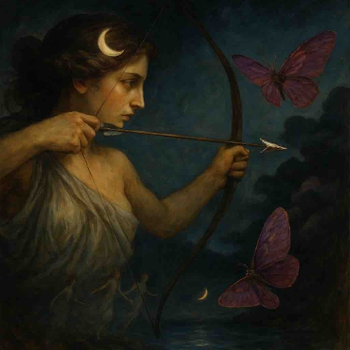 Wiersz łączy młodzieńczą fascynację klasyczną formą z ciężarem wojennego doświadczenia. Jest świadectwem momentu przejściowego: Celan jeszcze pisze w stroju poetyckiej tradycji, ale już rozsadza ją obrazami śmierci, końca i fatum. Strzała Artemidy to symbol nieuchronnego losu, który nie ominie ani jednostki, ani epoki, a jeśli jest zbłąkana, może zabić przedwcześnie, po prostu zabić.